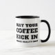 For the coffee lover. Modern black and white typographical design reads 'May your coffee kick in before reality does.' Any occasion gift for the coffee lover. Whilst the design is in black and white, Zazzle gives you the option to change the inside and handle colour.