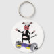 Funny black and white cow is riding on a hoverboard in this fun original art design.