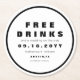 Send out these unique and funny "Free Drinks" save the date coasters to family and friends to make them save the date for your important day. The design features black ring encompassing modern typography. Personalise the design by replacing the text.