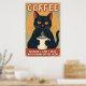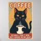 Funny Black Cat Coffee Art Poster