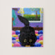 Funny Black Cat Mouse Quilt Jigsaw Puzzle
