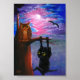 Funny Black Cat Owl Fall Moon Creationarts Poster