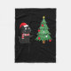 Funny Black Cat Pushing Christmas Tree Over Cat Wh Fleece Blanket