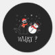 Funny Black Cat Pushing Snowman Christmas Winter C Classic Round Sticker
