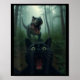 Funny Black Cat Selfie With T-rex Dinosaur Forest Poster