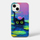 Funny Black Cat Swimming in Pond | Quirky Art iPhone Case