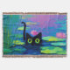 Funny Black Cat Swimming in Pond | Quirky Art Throw Blanket