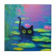 Funny Black Cat Swimming in Pond | Quirky Art Tile