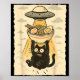 Funny Black Cat Ufo Ramen Alien Abduction Graphic Poster