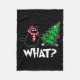Funny Black Cat Xmas Pushing Christmas Tree Over C Fleece Blanket