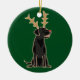 Funny Black Lab with Reindeer Antlers Christmas Ceramic Tree Decoration