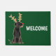 Funny Black Lab with Reindeer Antlers Christmas Doormat