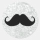 Funny Black Moustache And White Sparkle Bling Classic Round Sticker