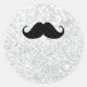 Funny Black Moustache And White Sparkle Bling Classic Round Sticker