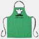 Funny black moustache BBQ chef apron for men. Personalised cooking and baking aprons for cook, dad, father, husband, grandpa, boyfriend, uncle, son, coworker, boss, baker, pastry chef etc. Black handlebar moustache design with white cook's hat. Add your own name or funny quote like BBQ King or Grill Master. Custom colour kitchen apron for grilling and barbecue parties. Green or custom colour. Also fun for pizza maker in pizzeria or restaurant.