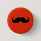 Funny Black Moustache on Orange Red Background 3 Cm Round Badge