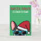 If you know someone who loves french bulldogs and has a good sense of humour, this funny frenchie Christmas card is ideal for sending to them during the festive holiday. The design features a cartoon-style illustration of a black and tan coloured french bulldog wearing a red Santa hat and sunglasses with the wording “Santa Paws is comin’ to town" written on the front. Wording on the inside reads "Wishing you a pawsome Christmas” but can be changed to your liking. This design is also available with different coloured french bulldogs.