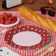 Decorate your party with these paper plates with this cute and scary cartoon of a Jolly Kitty Pirate Skull and Bones. The background is pink and red.
