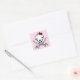 Decorate you Apple laptop with this funny square sticker with this cute and scary cartoon of a Jolly Kitty Pirate Skull and Bones. The background is pink.