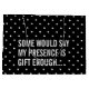 Add a touch of humour to your celebrations with this funny gift bag featuring bold white text on a chic black and white polka dot gift bag design. The witty phrase, “Some would say my presence is gift enough…” makes it the perfect sarcastic gift bag for friends, family, or coworkers. Whether you’re wrapping a birthday present, using it as a party favour bag, or just want a humourous present bag to get a laugh, this reusable gift bag is sure to stand out. Ideal for any occasion, from holidays to casual get-togethers, this gag gift packaging combines style and humour for a memorable touch.