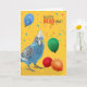 Budgies are popular pets, being small and sweet parakeets in a varying palette of colors and markings. This cute blue and white Budgerigar sends happy BIRDday wishes to the bird person in your life.
