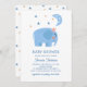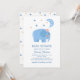 Funny blue elephant & moon stars. Cute baby shower Invitation