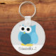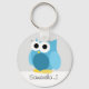 Cute custom keychain featuring an illustration of a blue owl and personalised with your name or text. Great for owl lovers, as a gift, or can be given as party favours at a baby shower.