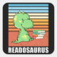 Funny Book Readosaurus Dinosaur Reading Dino Retro Square Sticker