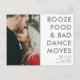 These save the date postcards are for the fun-loving couple who can't wait to celebrate with their family and friends. Grey text design with your custom photo that reads: Booze, food and bad dance moves. Customise the front side of the postcard with your photo, names, wedding date and location. Add your return address and additional wedding details to the backside of the postcard. C
