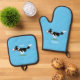 Funny Border Collie dog running cartoon Oven Mitt & Pot Holder Set