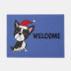 Funny Boston Terrier Dog in Santa Hat Christmas Doormat