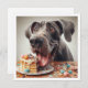 A really funny invitation picturing a Great Dane eating a birthday cake messily and wearing a party hat, a great invitation for Great Dane and dog lovers.