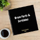 Funny, Black, Minimalist Sketchbook Notebook with title “Brain Farts & Scribbles” and custom option to add your name and year at the bottom. In addition you can customise the inside pages to a different design layout and choose a different spiral colour. Checkout our funny notebook collection!