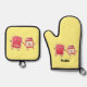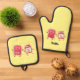 Funny bread and jam cartoon characters oven mitt & pot holder set