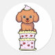 Funny brown dog jumping out of a cake classic round sticker
