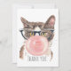 Whimsical watercolor illustration features cat wearing funky retro style glasses blowing bubble gum. Definitely not your average floral / fancy thank you card - and yet it works so well for so many situations.