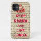 Funny humourous take on the popular "keep calm" slogan with a Buddhist theme. "Keep Karma and Live Longa" red text on an antique vintage Buddha book illustration on a vintage paper background.
