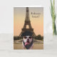 Customisable card with a Bull Dog in a beret(BadDogHats.com) in front of the Eiffel Tower (PublicDomainPictures.) You can customise. Now on the outside it says Do You Speak French? Inside it says Happy Birthday. You can go to googletranslate and get another French phrase. You can change the text, fonts, font size and font colour. The Bull Dog is thanks to publicdomainpictures.