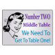 Funny Bunco Number Two Middle Table for your Bunco group. Players will appreciate these funny retro cards to help them move from table to table after each round.