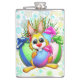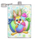 Funny and Cute Easter Bunny Cartoon Character biting a decorated Egg. Original Digital Art Copyright BluedarkArt.
