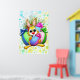 Funny and Cute Easter Bunny Cartoon Character biting a decorated Egg. Original Digital Art Copyright BluedarkArt.