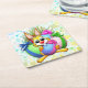 Funny Bunny biting an Easter Egg Square Paper Coaster