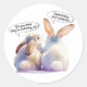 These cute and funny round bunny stickers depict an adorable conversation between two bunnies: "Do you think they’re watching us?" and "Definitely. Act natural." With their soft illustration style and playful humor, they're perfect for adding a personal touch to everyday items like laptops, notebooks, and gifts. A delightful design for bunny lovers and anyone who appreciates lighthearted and relatable humor.