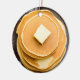 Funny food pun Christmas ornament. Funny quote, "All I want for Christmas is Pancakes." Buttered pancakes graphics.