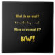 A witty, minimalist parody of a protest chant that humorously nods to a vintage television game show, using bold yellow text on a black background to deliver a punchline with perfect comedic timing.