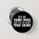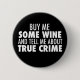 Buy me some wine and tell me about true crime. A funny button for someone with a sense of humour who likes to listen to podcasts about serial killers or watch every murder documentary out there.