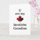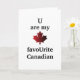 Oh, Canadians and their U's! This funny joke card is the perfect modern Valentine for the Canadian in your life. Front bears the declaration "U are my favoUrite Canadian" with an iconic red maple leaf. Inside message reads simply "Happy Valentine's Day" but may be personalized or removed altogether.