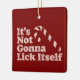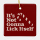 Funny Candy Cane Lick Itself Christmas Ceramic Ornament