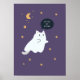 Funny cartoon cats with brooms, pumpkins and ghost poster
