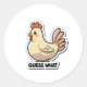 Add a touch of humour to your collection with this adorable cartoon chicken sticker featuring the phrase "Guess What". Designed in a cute, colourful, and playful style with bold outlines and a thick sticker border, it’s perfect for decorating laptops, water bottles, journals, or any surface that needs a little laugh. Ideal for animal lovers, farmers at heart, and anyone who enjoys fun and quirky designs